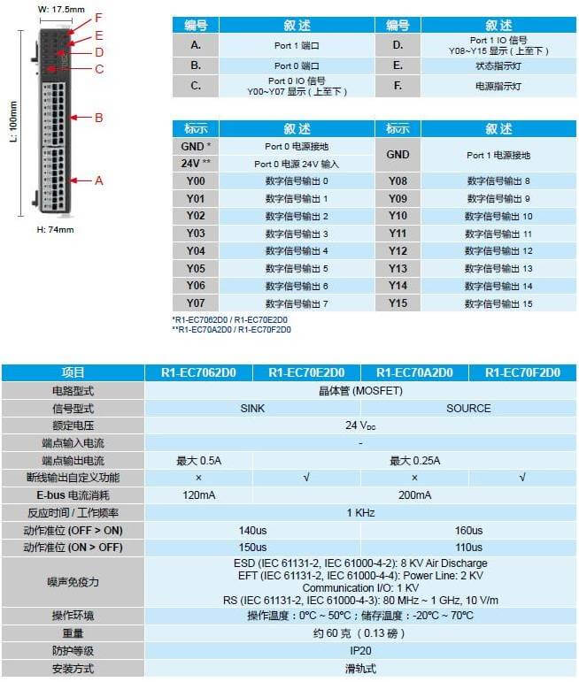 EtherCAT 16 通道數(shù)字輸出擴展模塊 - R1-EC7062D0